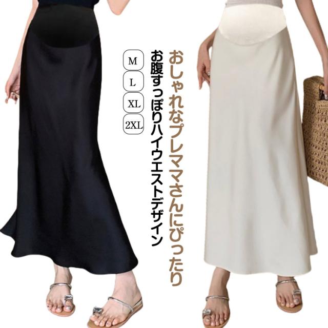 光沢感 ロング丈 妊婦 タイト 産前 妊婦服 きれいめ マタニティ ボトムス サテンスカート ロングスカート 接触冷感 サテン 産後 ウエストゴム 妊娠 aライン フレアスカート レディース マキシ スカート とろみ 落ち感 服 ボトムス オフィス 通勤 春 夏 秋