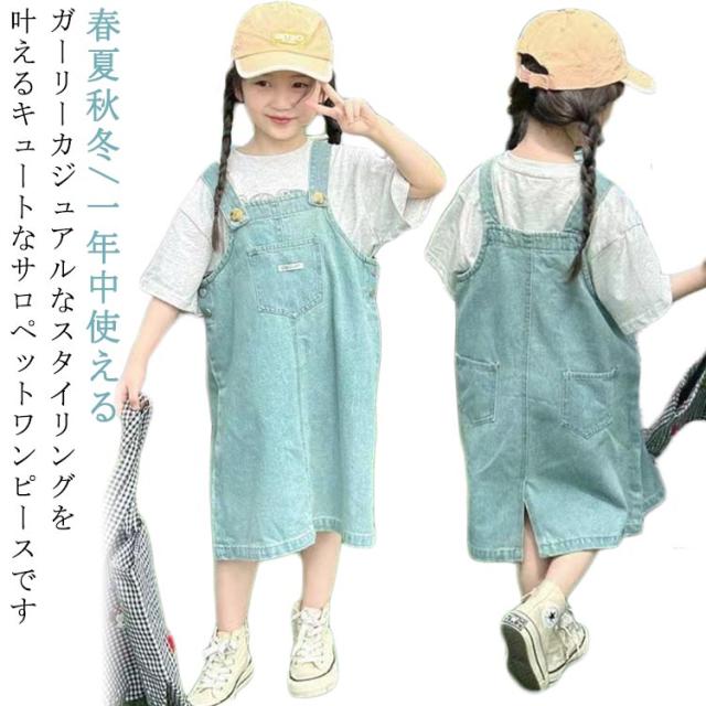 つなぎ デニム 女の子 ジャンスカ 子供服 ワンピース キッズ服 ジャンパースカート 韓国子供服 ベビー服 キッズ ジャンパースカート ゆったりシルエット 120 オーバーオール オールインワン カジュアルワンピー 春 夏 秋 110 サロペット 130 140 150 160cm
