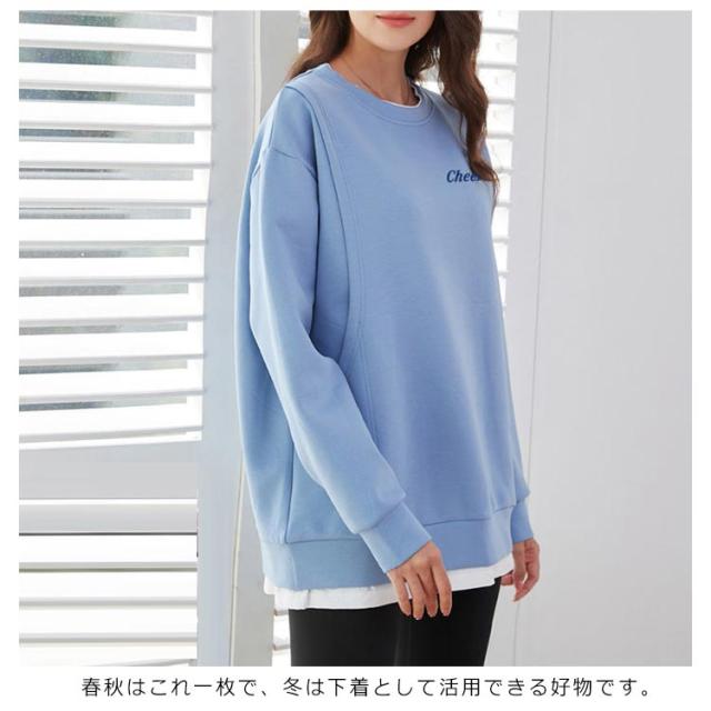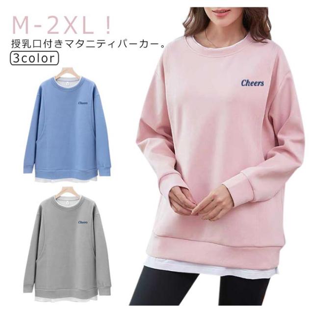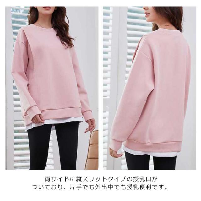 ルームウェア 長袖 おしゃれ マタニティ 春 秋 授乳服 重ね着風 トレーナー 授乳服 スウェット 授乳口付き マタニティウェア 春秋冬 無地 カットソー カジュアル パーカー 可愛い 防寒 旅行 産前 産後 妊婦 プレゼント ギフト