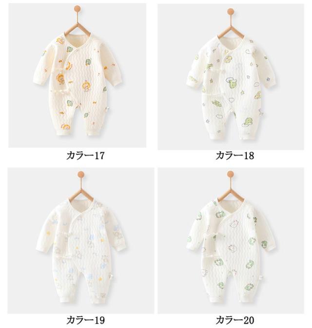 新生児服 前開き 厚手 赤ちゃん 3重綿 女の子 長袖 ロンパース ベビー服 カバーオール 部屋着 男の子 あったか キルト ロンパース くま ウサギ おしゃれ かわいい 52cm 59cm 66cm ルームウェア パジャマ 中綿 新生児 幼児 春 秋 冬 出産祝い ギフト プレゼント
