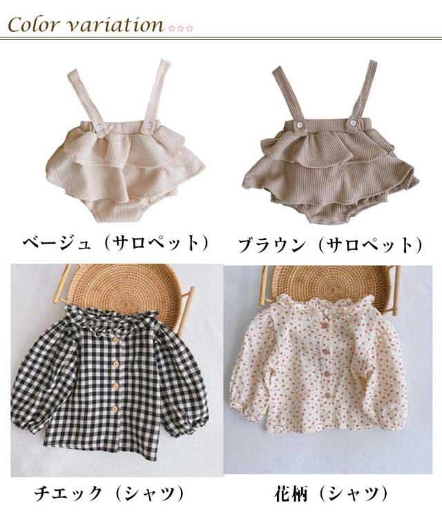 | 色 | ベージュ(サロペット) ブラウン(サロペット) 花柄(シャツ) チエック(シャツ) |
