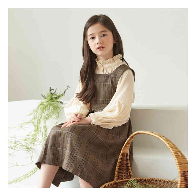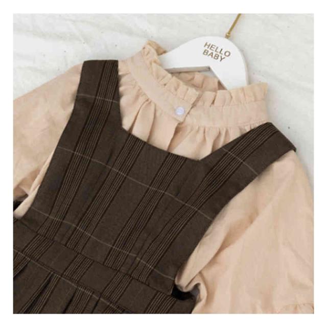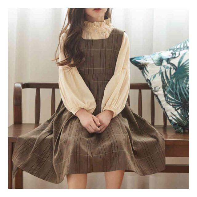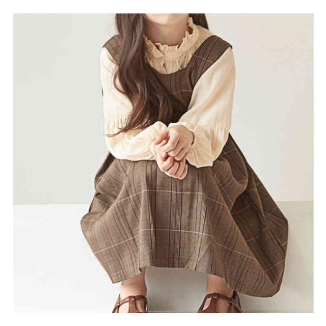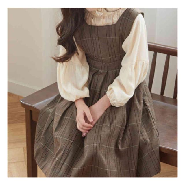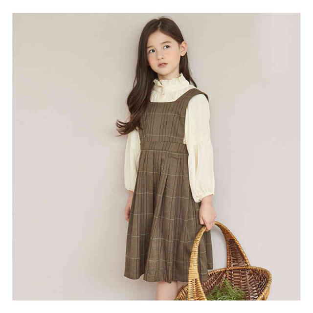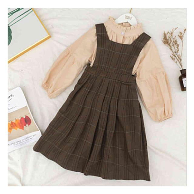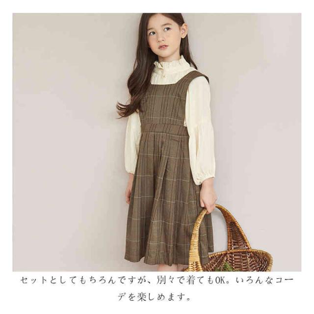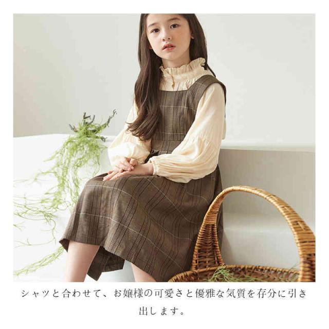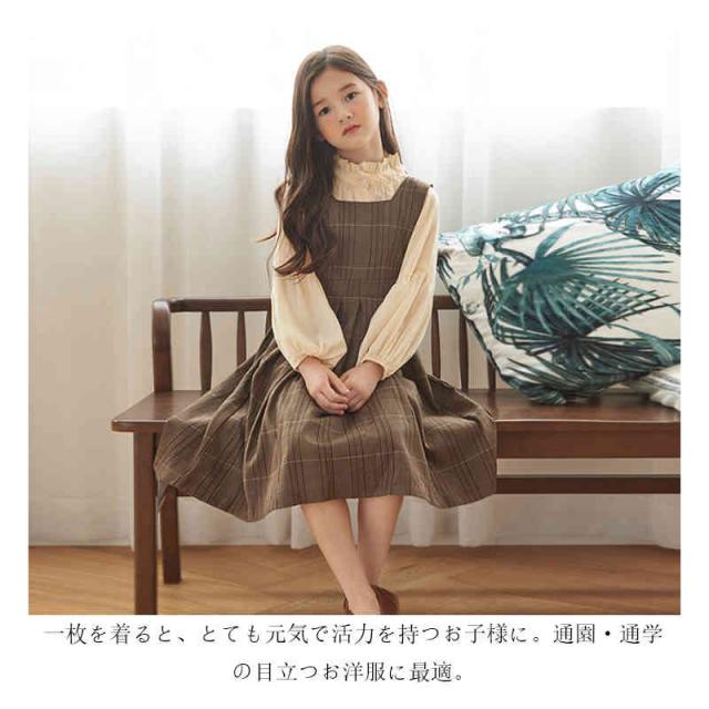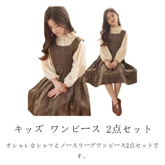 キッズ ワンピース 2点セット シャツ ワンピース 女の子 サロペット スカート チェック柄 スーツ 子ども服 長袖 大きいサイズ おしゃれ 可愛い 子供 キッズ ジュニア 春 秋 冬