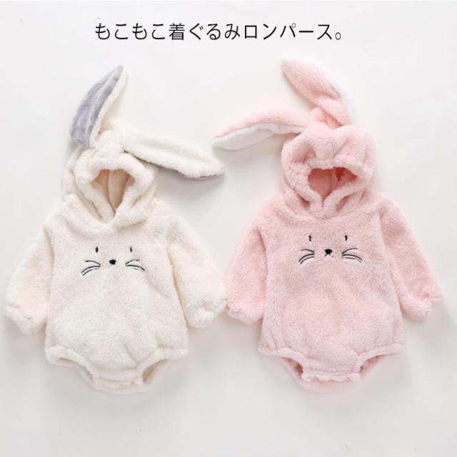 ベビー服 ロンパース パーカー フリース フード付き ボア 着ぐるみ 防寒着 耳付き うさぎ ウサギ 兎 もこもこ モコモコ 秋 冬 赤ちゃん ベビー 女の子 男の子 キッズ 子供服 子ども服 暖かい