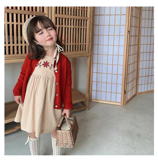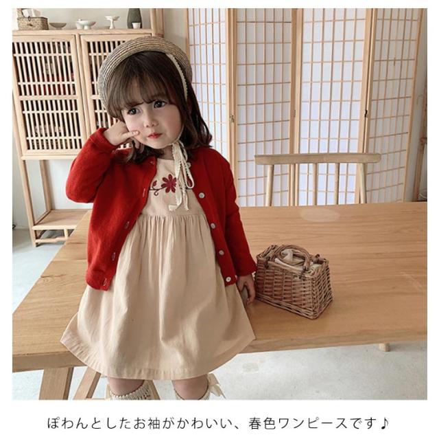 バルーンスリーブワンピース キッズ 女の子 90-130 花 刺繍 こども服 子供服 kids ワンピース 春 夏 秋 ガーリー 長袖 こども 子供 ジュニア ワンピ おしゃれ ギャザープリーツ ?無地