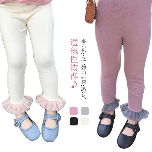 レギンス スパッツ ボトムス 10分丈 伸縮性 女の子 キッズ 韓国子供服 子ども服 春 秋 冬 90cm 100cm 110cm 120cm 130cm レース チュチュ