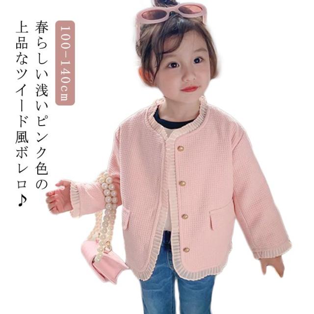 ツイード風 子供 ジャケット 発表会 カーディガン スーツ きれいめ 長袖 アウター フォーマル ボレロ スーツ 七五三 ベビー キッズ 子供服 女の子 春 秋 結婚式 入学式 卒園式 コート 演奏会 入園式 卒業式 上品 送料無料 ピンク 100 110 120 130