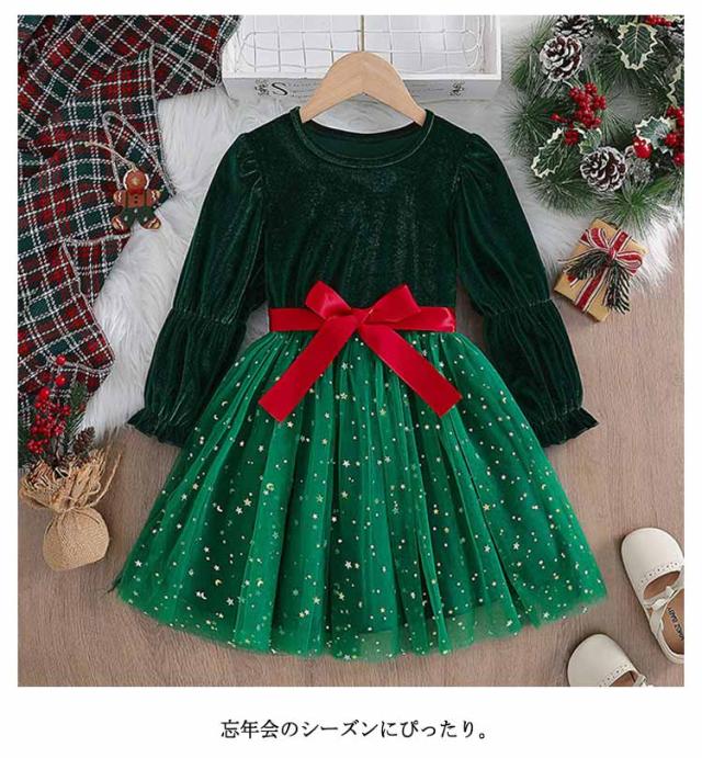 ワンピース 秋冬 冬 サンタドレス クリスマス キッズ クリスマス衣装 秋 グリーン サンタ衣装 クリスマス コスチューム コスプレ リボン 春 子供 仮装 クリスマスツリー サンタクロース 女の子 演出服 パーティー 発表会 お出かけ 通学 グリーン ドレス サンタ