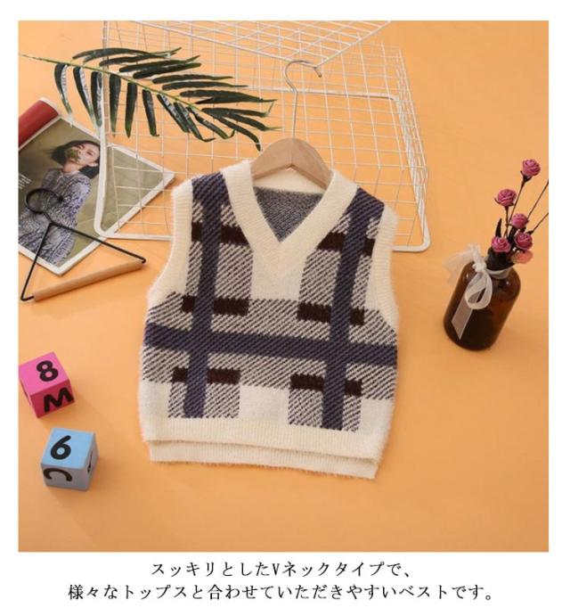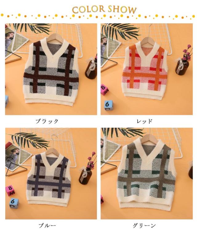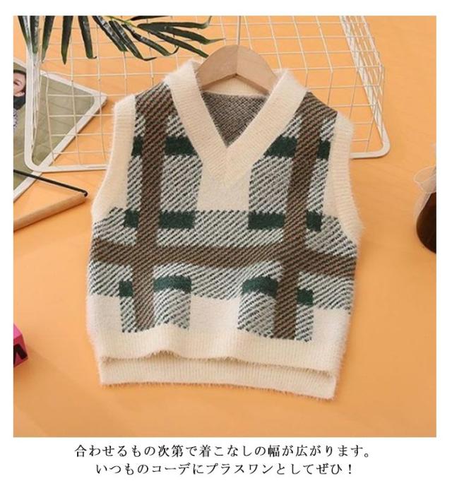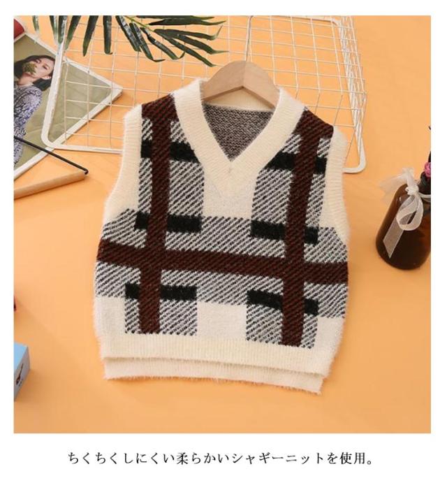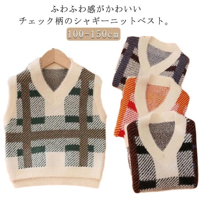 ベスト プルオーバー シャギーニットベスト ニットトップス Vネック キッズ 秋 子供服 ジャガード シャギーニット 男の子 冬 チェック柄 キッズ もこもこ 女の子 ベスト ジャガードニット 可愛い 起毛 保温 暖かい 防寒 通学 100 110 120 130 140 150
