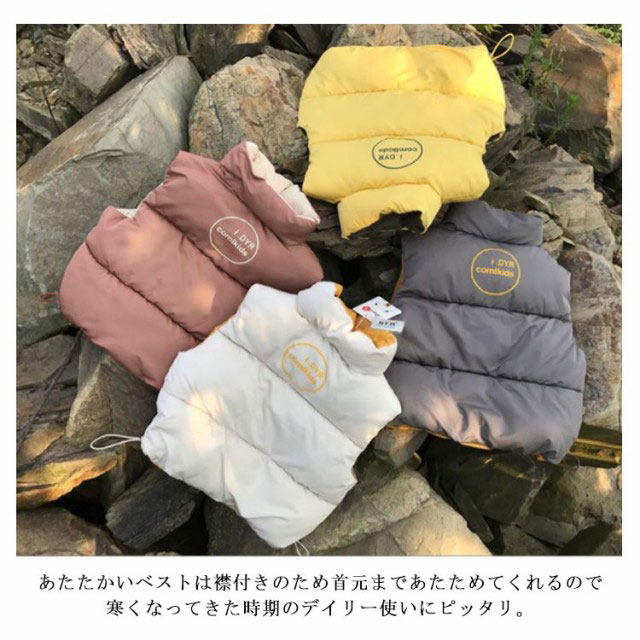 | 上質軽量エコダウンを使用したぬくもり溢れるキッズ用ベスト。 あたたかいベストは襟付きのため首元まであたためてくれるので寒くなってきた時期のデイリー使いにピッタリ。 前開きのファスナーで着脱もスムーズです。 袖が無い分、動きやすいのでアクティブなお子様におすすめ◎ 普段着としてはもちろん、アウトドアスタイルにも最適です。 | |