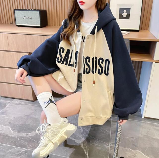 トップス パーカー 長袖 スウェット パーカーコート レディース アウター ロゴ 英文字 ゆったり オーバーサイズ オシャレ ジップアップ M L 2L 3L