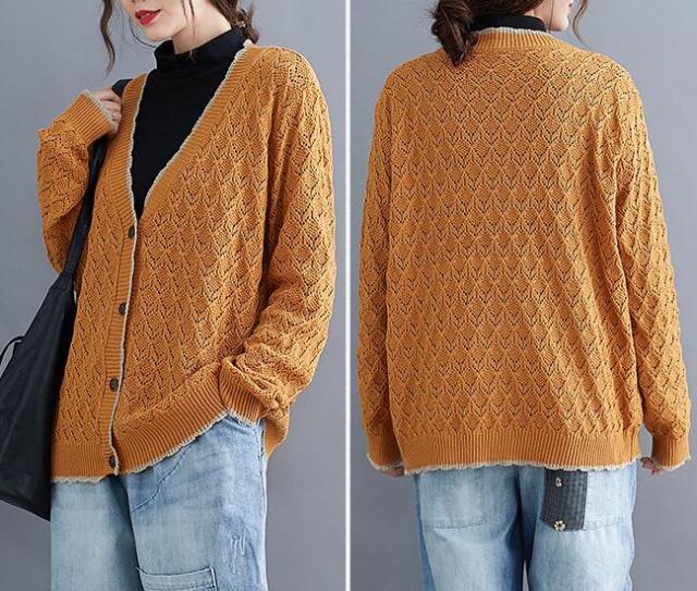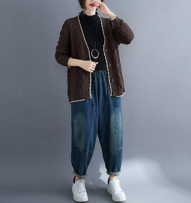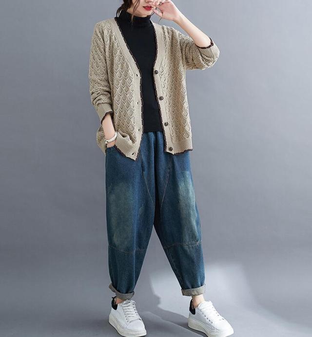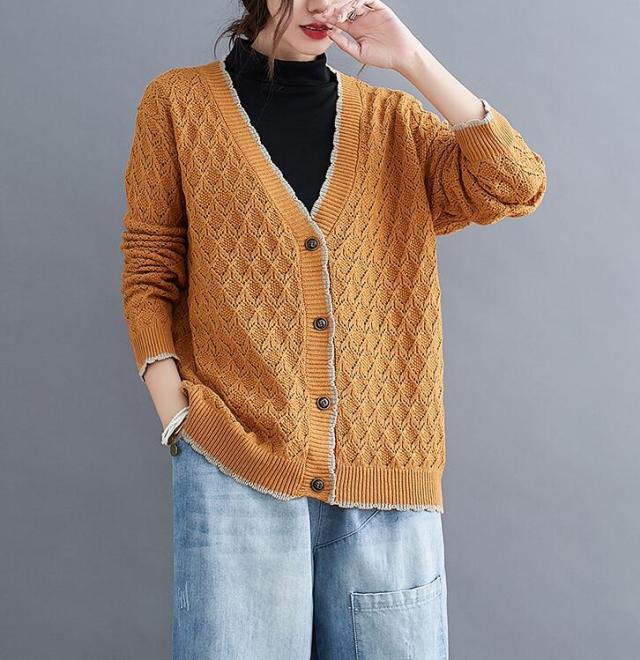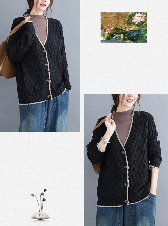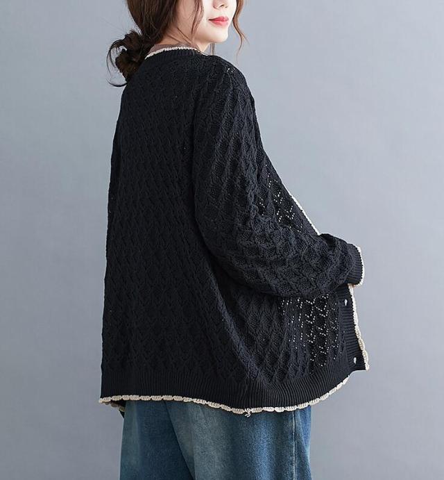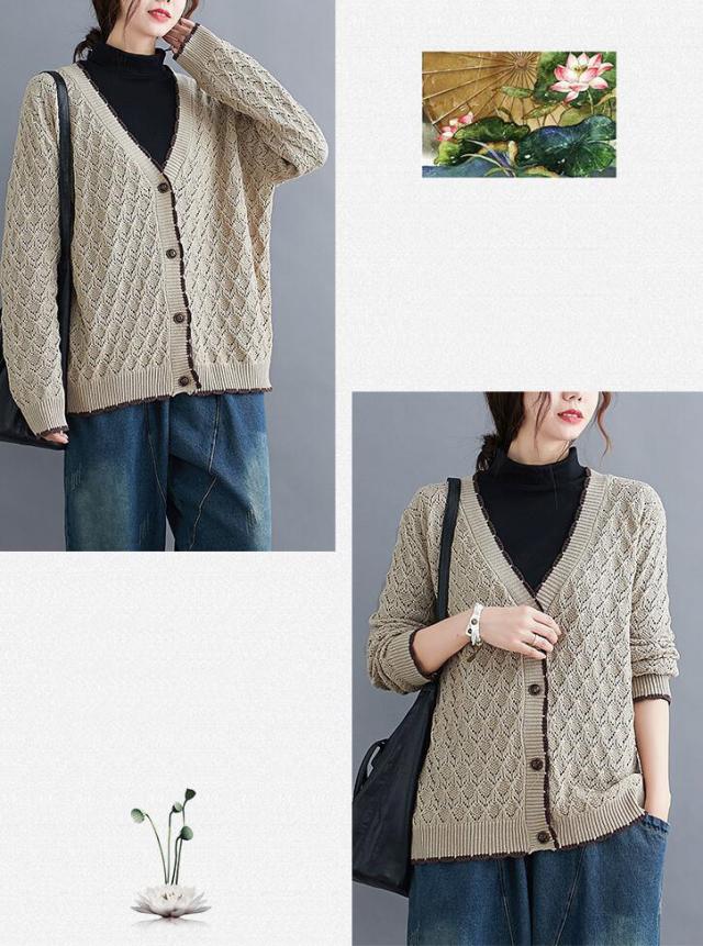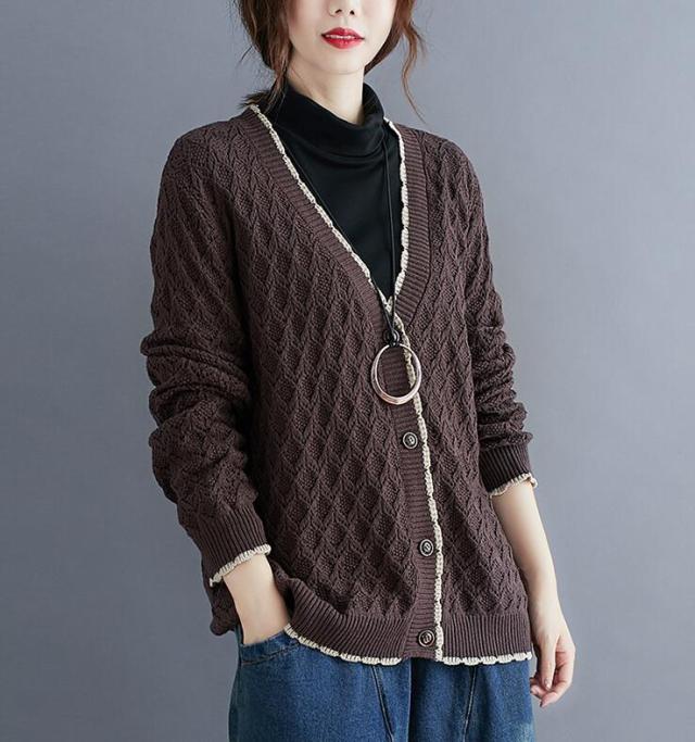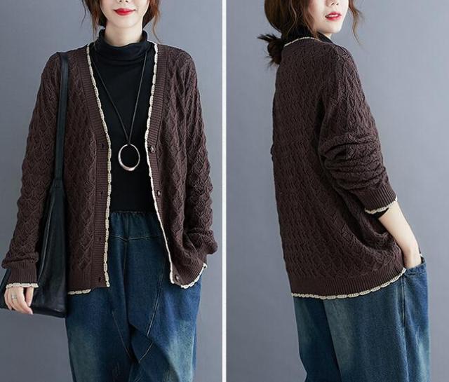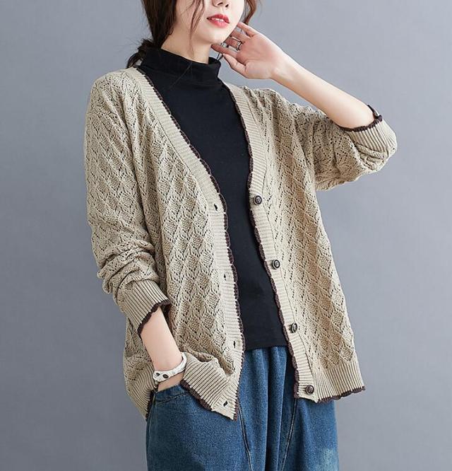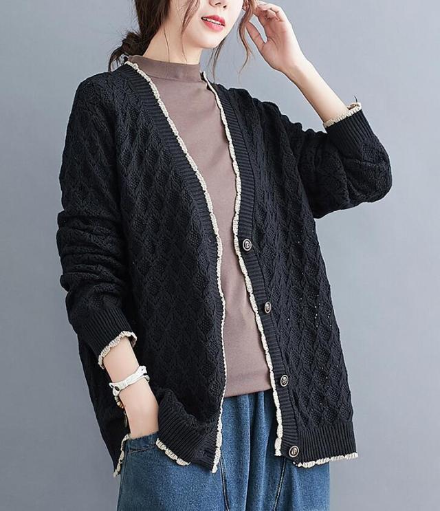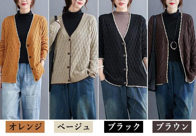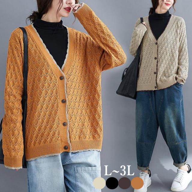 ニットカーディガン カーディガン アウター ニット カーデ ざっくり ゆるニット ニットトップス 前開き ボタン付き ゆったり 春秋 長袖 大きめ レディース 無地 L 2L 3L