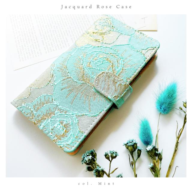 ジャガードローズ 手帳型ケース (内側:黒TPU ケース)