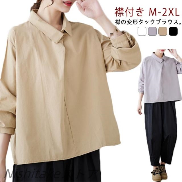 ゆるシャツ カジュアルシャツ 長袖 タック シャツ トップス 体型カバー レトロ 襟付き 40代 30代 ブラウス 50代 ブラウス 可愛い 大人 着痩せ 通勤 オフィスカジュアル 春 夏服 無地 アシンメトリー イレギュラーシャツ