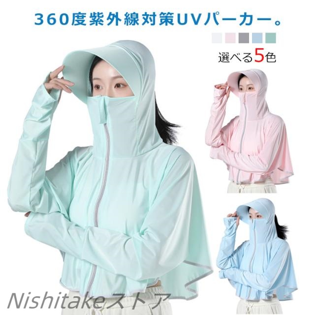 吸湿 UVパーカー ラッシュガード UPF50+ ラッシュパーカー パーカー 夏 レディース 薄手 フード付き ラッシュガードパーカー 水着 UV UVカット 指穴 接触冷感 日焼け対策 360度紫外線対策