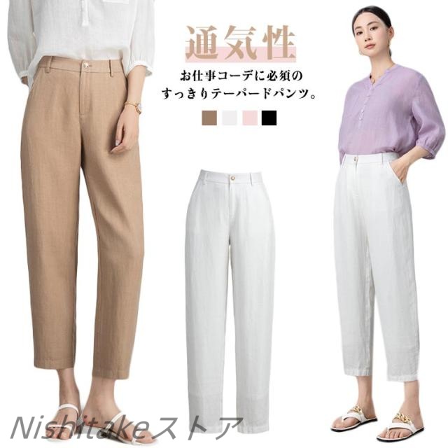 きれいめ 7分丈 体型カバー ウエストゴム レディース クロップド丈 ハイウエスト 通気性 ズボン 春夏 麻パンツ 薄手 クロップドパンツ 接触冷感 スラックス リネンパンツ 涼しい ゆったり テーパードパンツ リネン混 低身長 通勤 通学 無地 大人 おしゃれ