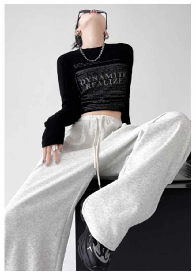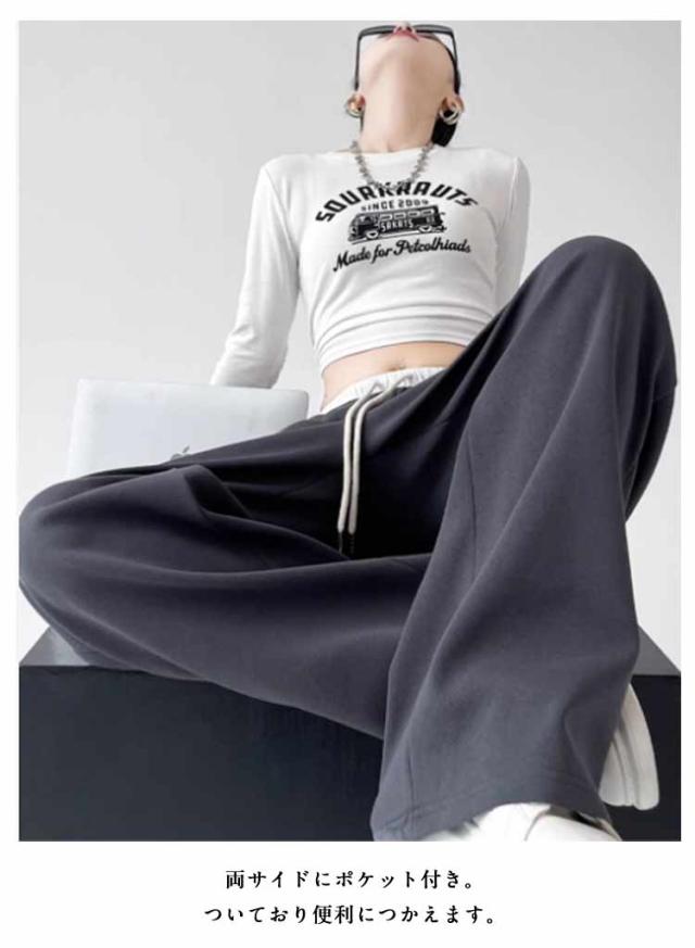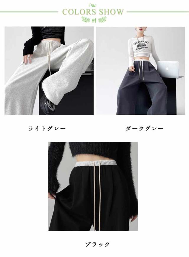 グレー ワイドパンツ ストレッチ スウェットパンツ ボトムス ストレートパンツ 春 スウェットパンツ ハイウエスト 秋 ゆったりルームウェア 部屋着 低身長 ジョガーパンツ キレイめ 薄手 パンツ ロングパンツ カジュアル 無地