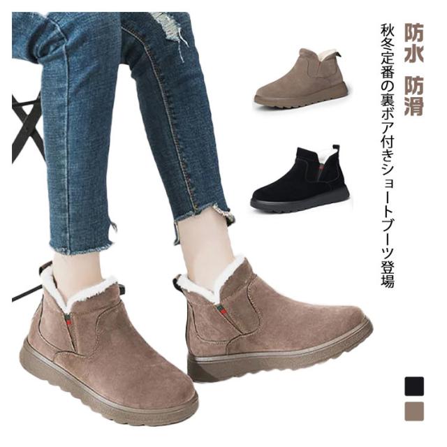 ムートン風 レディース スノーブーツ 防水 ブーツ スノーブーツ 防滑 スノーシューズ ショートブーツ 裏起毛 あったか ボアブーツ 靴 レディース 保温 防寒 滑り止め ペタンコ ローヒール 厚底 裏ボア 軽量 歩きやすい