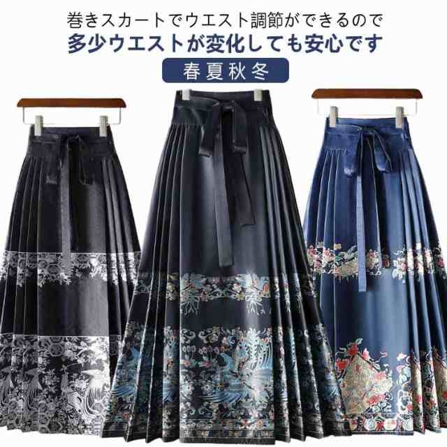 プリーツスカート ロングスカート チャイナドレス スカート 巻きスカート マミアンスカート 民族風 マミアンスカート ロング丈 大人かわいい レディース 漢服唐装 ラップスカート 古代 中華服 コスプレ衣装 復古風 写真撮影 中国宮廷風唐装 春 夏 秋
