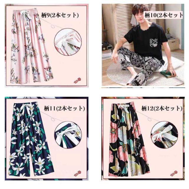 ルームパンツ 夏用 イージーパンツ 2本セット!部屋着 ワイドパンツ 夏 2本セット!部屋着 パンツ パジャマ ルームウェア ズボン リラックスパンツ 30代 ボトムス 総柄 涼しい さらさら 冷感 40代 柄 50代 可愛い 大きサイズ