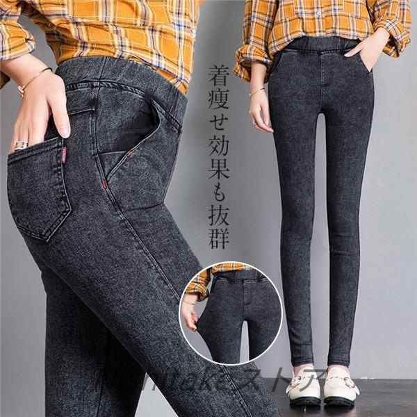送料無料 スキニーパンツ デニム ジーンズ ストレッチ ロング丈 レディース ボトムス パンツ スキニー 納期8-10日 デニムパンツ ウエストゴム