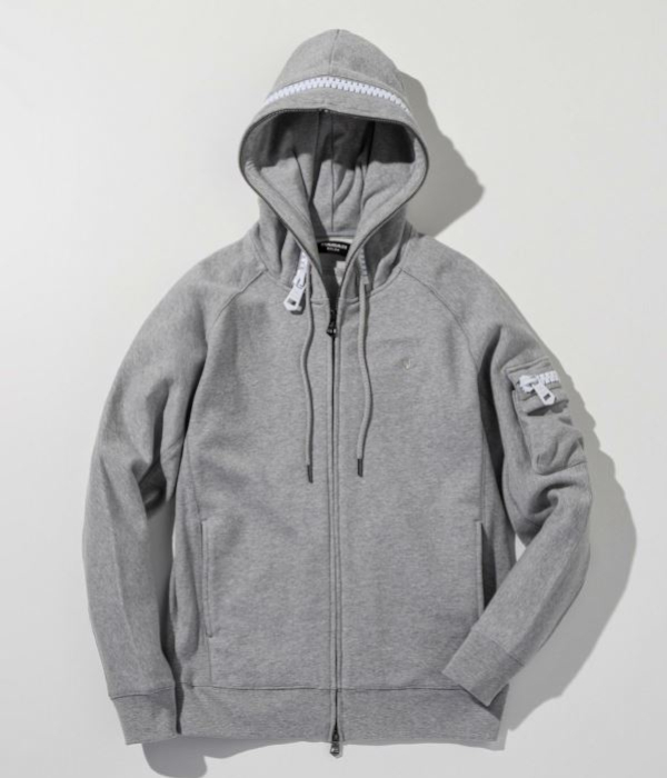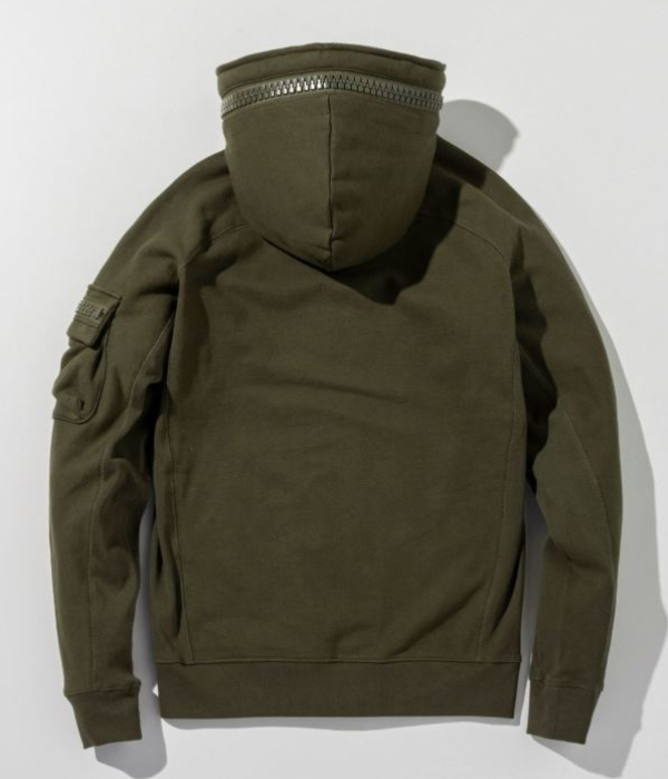 フラップ部分とパーカーのフードに人気のビッグファスナーを差し込みアクセントをプラス。