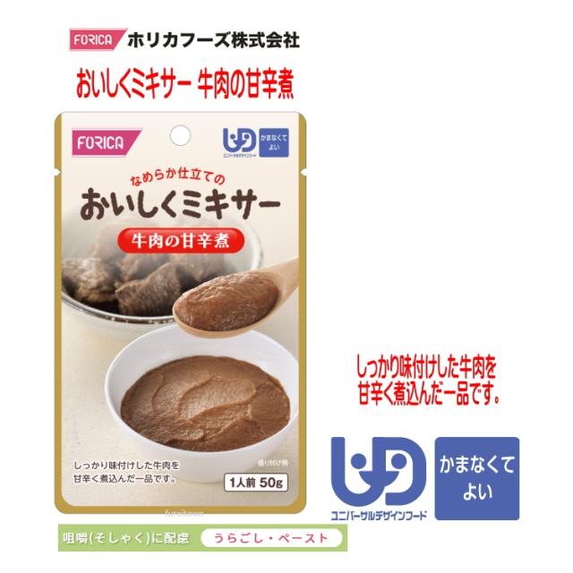 【ホリカフーズ】おいしくミキサー 牛肉の甘辛煮 / 567555 50g しっかり味付けした牛肉を甘辛く煮込んだ一品です。 ミキサー食 レトルトパウチ食品 かまなくてよい(区分4)【調理済 レトルト】【おかず】 介護食 高齢者 シニア 和食