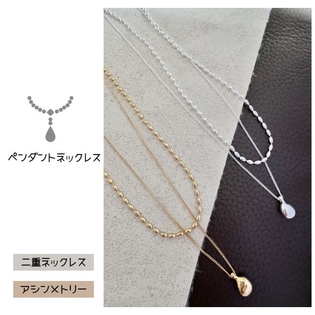 ペンダントネックレス 二連ネックレス アシンメトリー 肌に優しい アレルギー対応 人気 日常 ニ重 シンプル おしゃれ ファッション プレゼント ギフト 504297