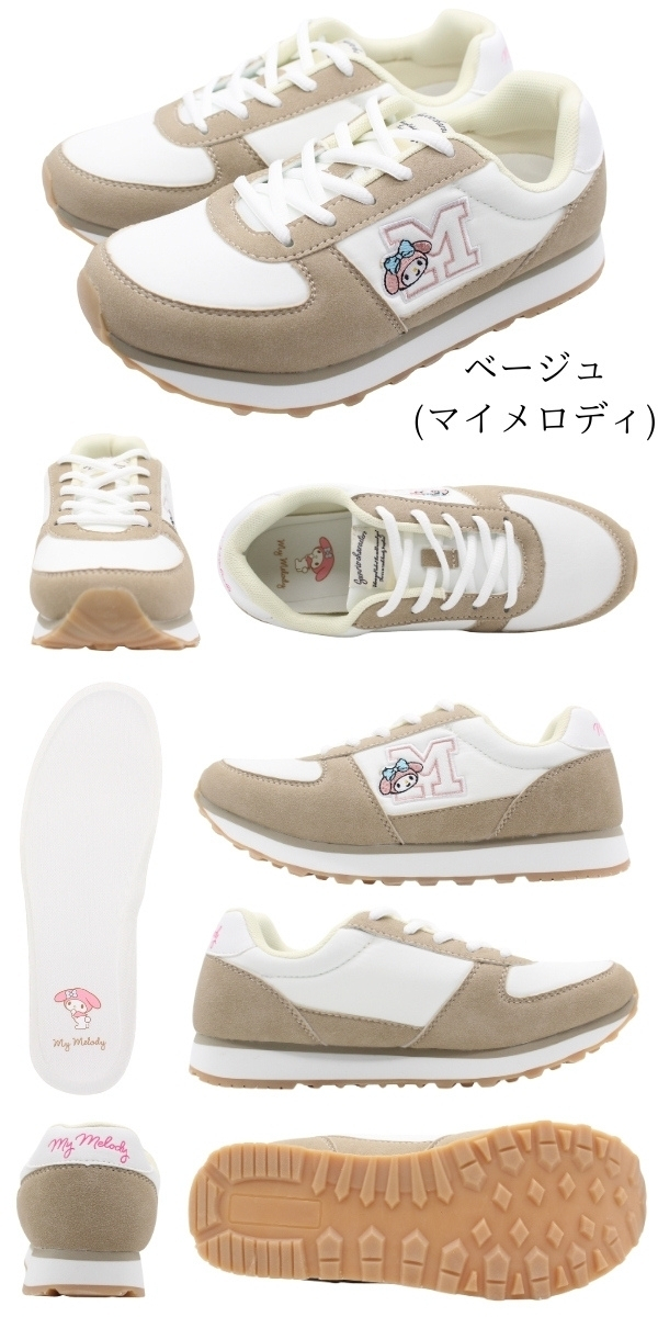 サンリオ スニーカー レディース 靴 クロミ キティ マイメロディ シナモロール ポムポムプリン 黒 ブラック ベージュ 軽量 軽い 撥水 クッション性 仕事 通勤 通学 普段 コーデ 人気 キャラクター かわいい おしゃれ 歩きやすい SANRIO 1503