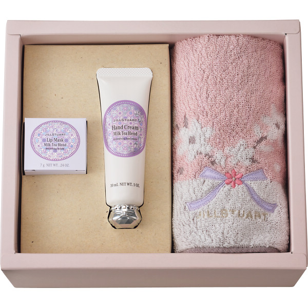 ●セット内容=タオルハンカチ×1枚・リップマスク(ミルクティーブレンド)7g・ハンドクリーム(ミルクティーブレンド)30g×各1
