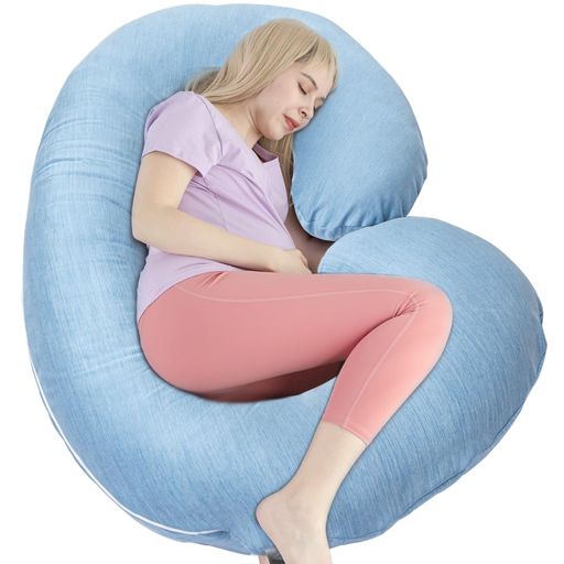 1 MIDDLE ONE C型抱き枕 マタニティ 授乳クッション 横向き寝 背もたれ 抱きまくら 大きい ふわふわ 取り外し可能カバー付き 妊婦 プレゼント 人気(冷感ブルー)