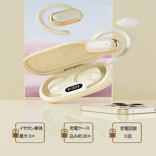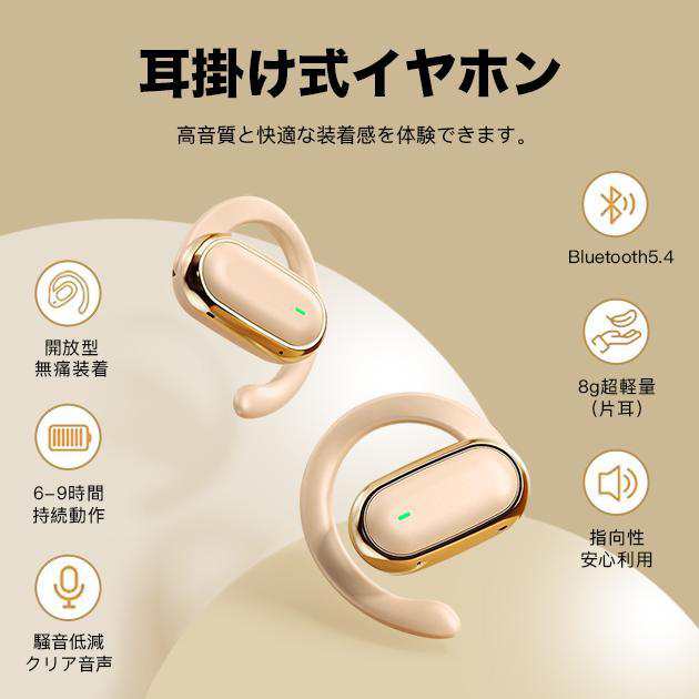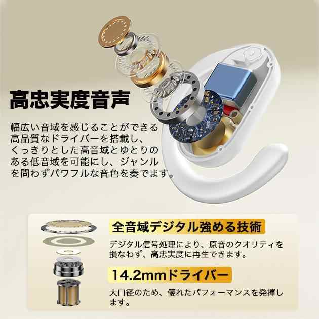 ワイヤレスイヤホン Bluetooth イヤホン オープンイヤー Bluetooth5.4 イヤーフック型 骨伝導イヤホン 耳掛けイヤホン 空気伝導 タッチ操作 48H再生 音漏れ防止/重低音/高音質 自動ペアリング Type-C充電 通勤/運動