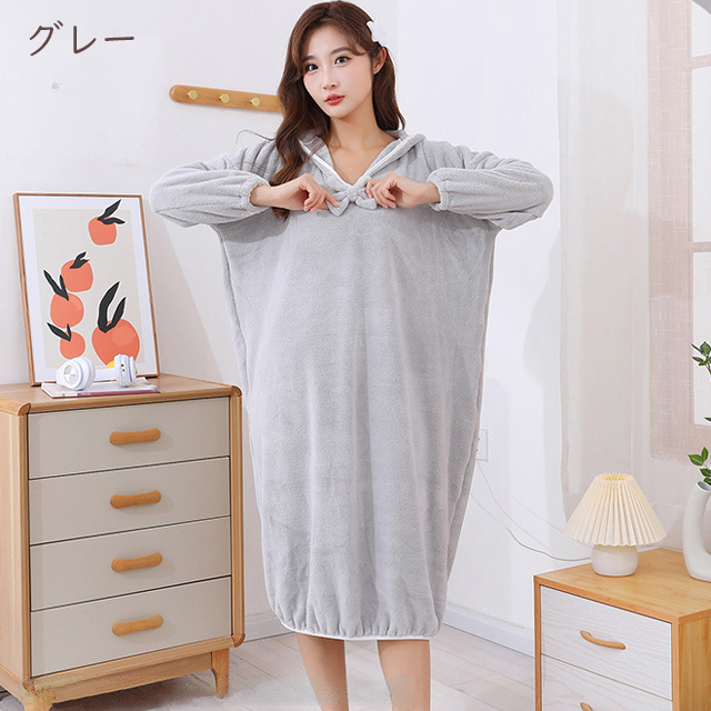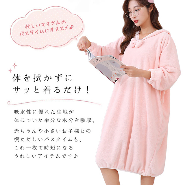 送料無料 冬新作 バスローブ ワンオペ レディース 出産祝い ママ ギフト 産後 母親 フード付きバスローブ ワンピース 風呂 ルームウェア パジャマ かわいい 速乾 ふわふわ ママローブ マイクロファイバー フード ふわねこ 長袖 部屋着 厚手 ふんわり プレゼント