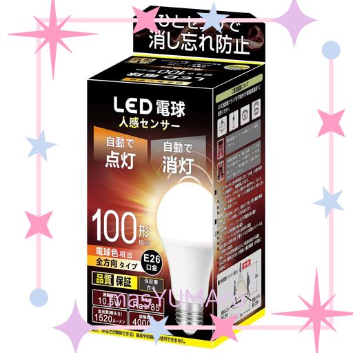 人感センサー LED 電球 E26口金 100形 電球色相当 (10.5W)消灯お知らせ機能搭載、自動点灯、消灯、消し忘れ防止、高輝度、省エネ、長寿命