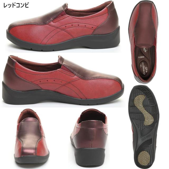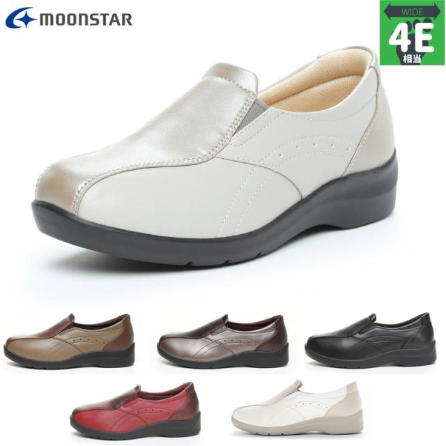 4E 幅広 ワイド ムーンスター イブ レディース 196 靴 シューズ カジュアル ふわピタ中敷 スニーカー やわらか設計 つまずき防止 軽量 スリッポン ブラック 黒 レッド ブラウン 赤 茶色 送料無料 MOONSTAR EVE