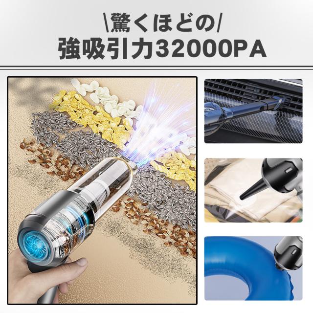 ハンディクリーナー 35000pa コードレス 掃除機 強力 3段階調整 空気入れ 充電式 静音 強力吸引 車用 多機能 USB充