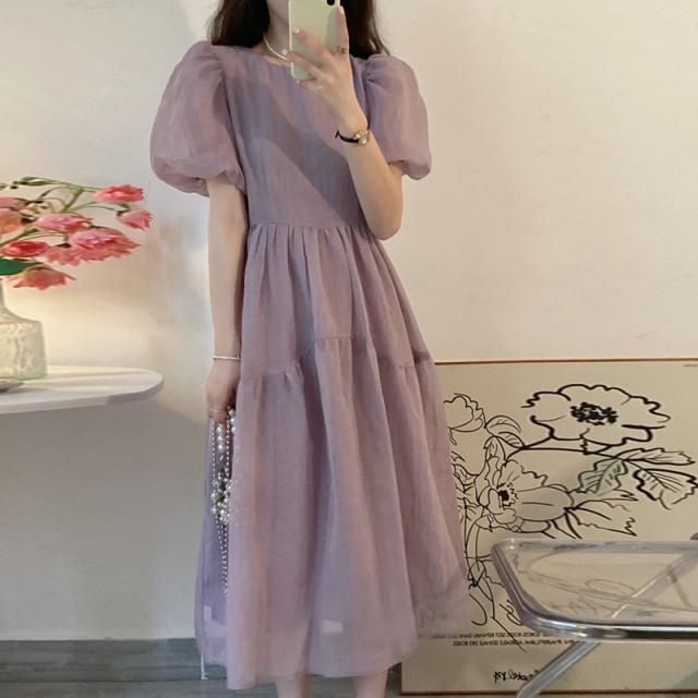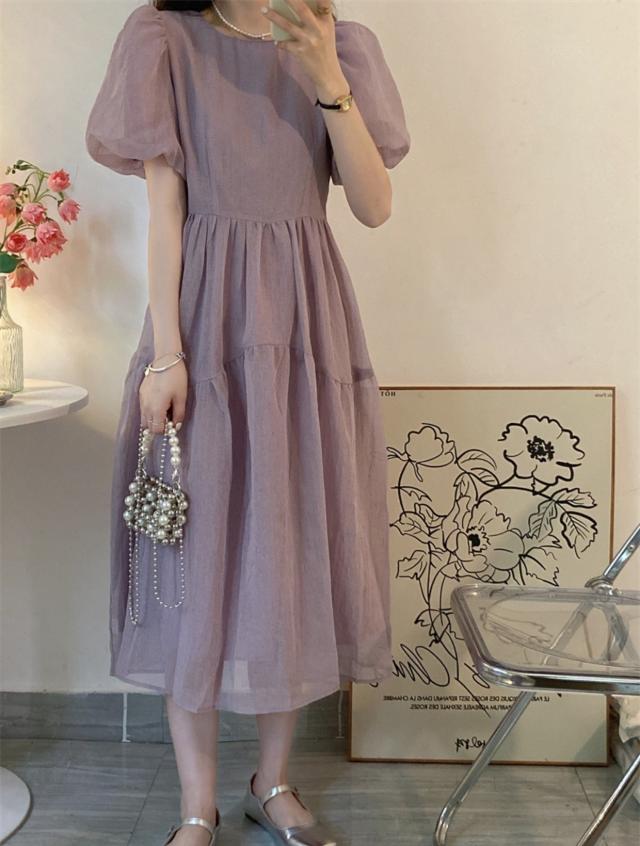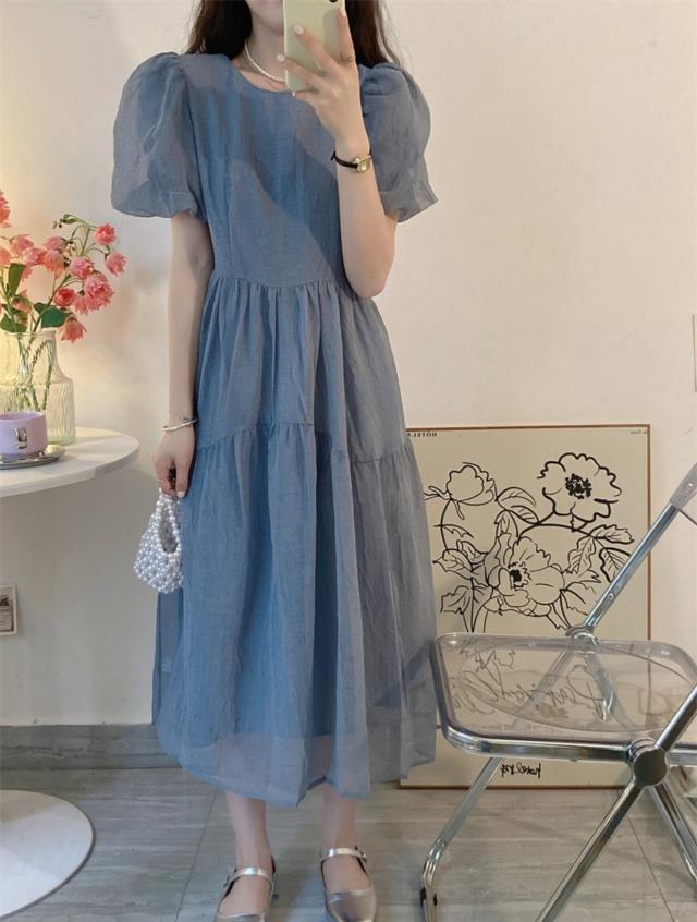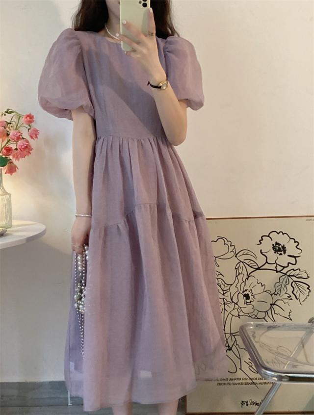 2色 ワンピース 半袖 春夏 きれいめ ロング フォーマル aライン aライン Aライン フレア ワンピドレス ぽわん袖 ボリューム袖 ボリュームスリーブ 袖コンシャス フレア セミフレア チュール シフォン ウエストマーク ふわふわ 透け感 シースルー ピンク 水色 パステルカラー くすみカラー 大人カラー 春カラー S M L ゆったり ゆる かわいい 大人可愛い きれいめ シンプル 大人 上品 おしゃれ ナチュラル リラックス 無地 コーデ スタイル 楽ちん モテ お揃い 双子 ラブリー キュート