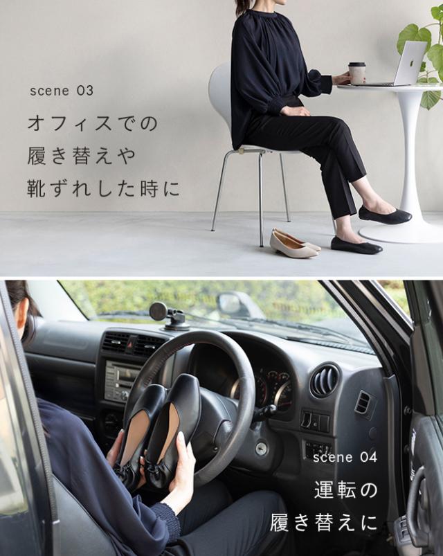 後ろから人が来て焦っちゃう。。。という場面でも、折りたたみスリッパと違ってパッと出せるから、焦らずスマートに脱ぎ履きができちゃう♪