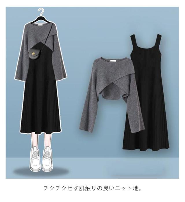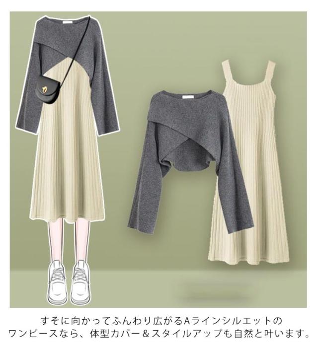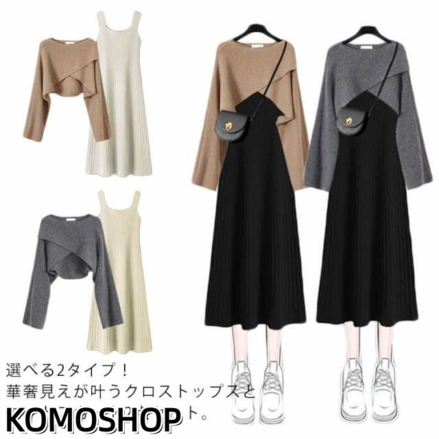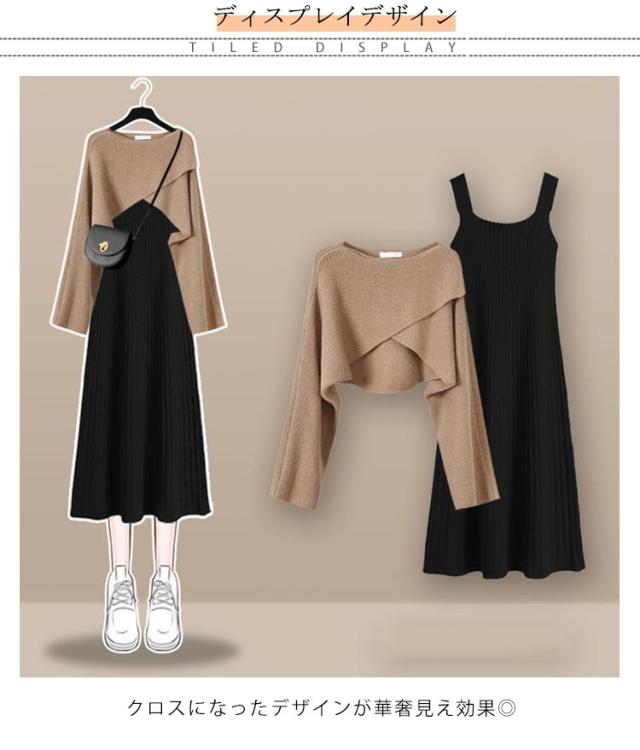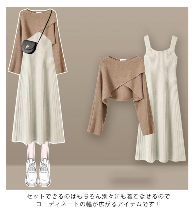 | 選べる2タイプ!華奢見えが叶うクロストップスとニットスカート2点セット。 クロスになったデザインが華奢見え効果◎ すそに向かってふんわり広がるAラインシルエットのワンピースなら、体型カバー&スタイルアップも自然と叶います。 チクチクせず肌触りの良いニット地。 セットできるのはもちろん別々にも着こなせるのでコーディネートの幅が広がるアイテムです! | |