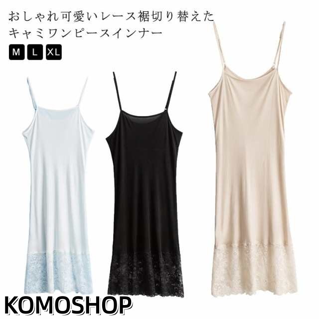 | おしゃれ可愛いレース裾切り替えたキャミワンピースインナー シンプルなデザインだからトップスにひびかず肌着として、透け防止、おしゃれレイヤードなコーデとしてもOK! タイトなシルエットで体にぴったりとフィットして、女性らしいセクシーさもアピール。 滑らかで良く伸びるシルク素材で、冷感あり、静電気軽減ができるスグレモノ♪ サラッと肌滑りも良くロングシーズン(春 夏 秋 冬)快適な着心地。 シンプル無地だからドレスやワンピースのインナーとして大活躍間違いなしです! | |
