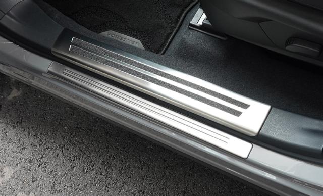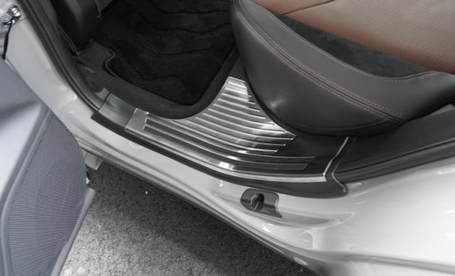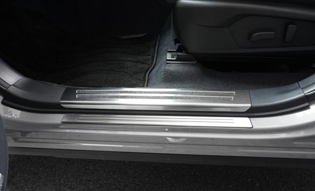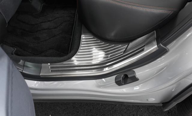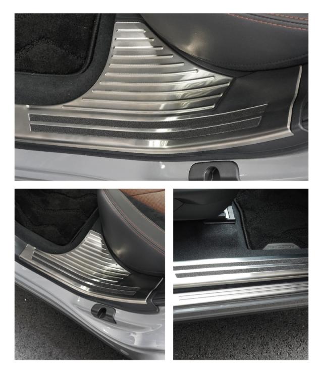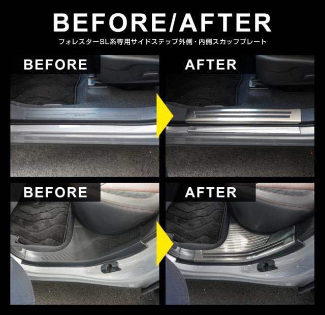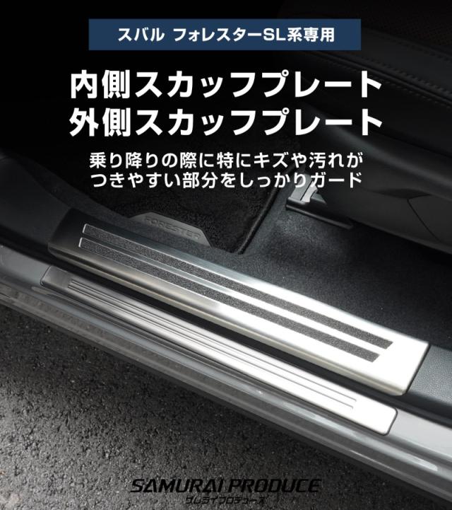 スバル 新型フォレスター SL系 専用 サイドステップ 内側 & 外側 スカッフプレート セット 6P シルバーヘアライン 内装 保護 パーツ ドレスアップ アクセサリー オプション 社外品 装飾品 カスタム カー用品