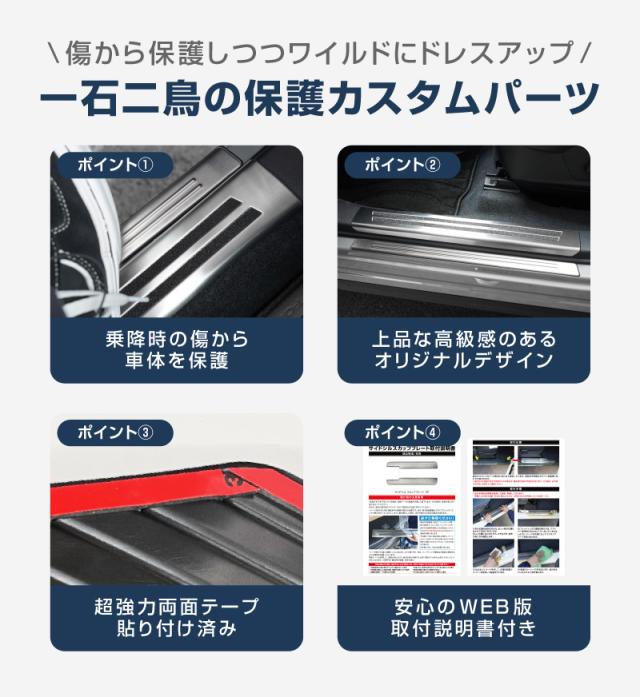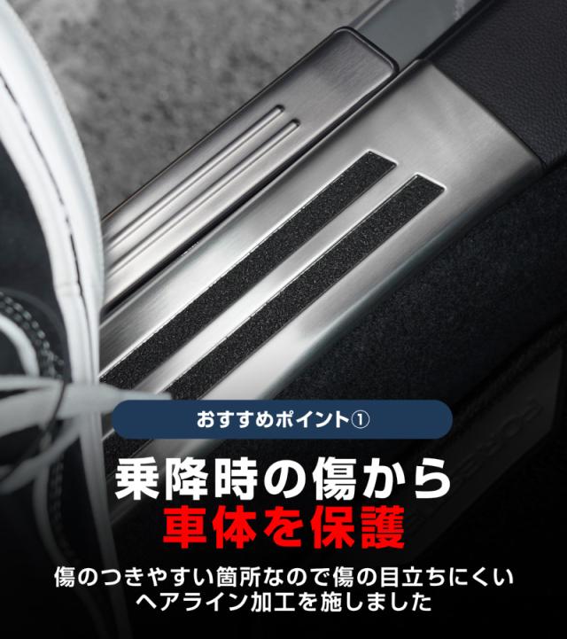 乗降時に傷が付きやすい樹脂部分をしっかりとカバーし、大切な愛車を守ります。