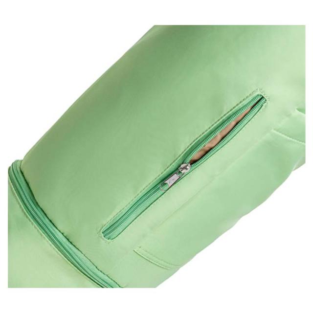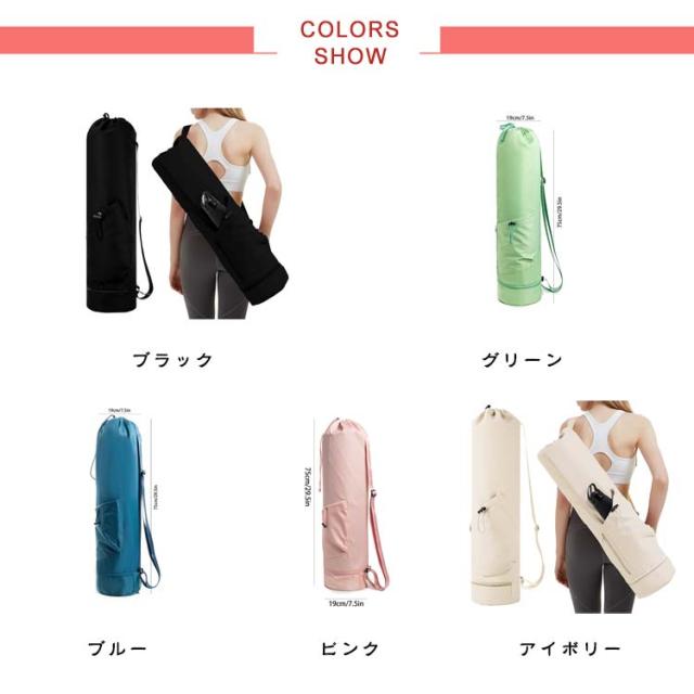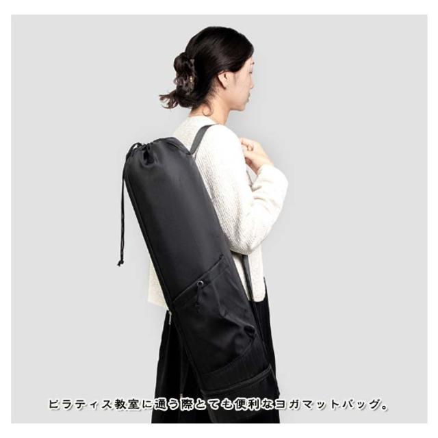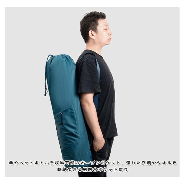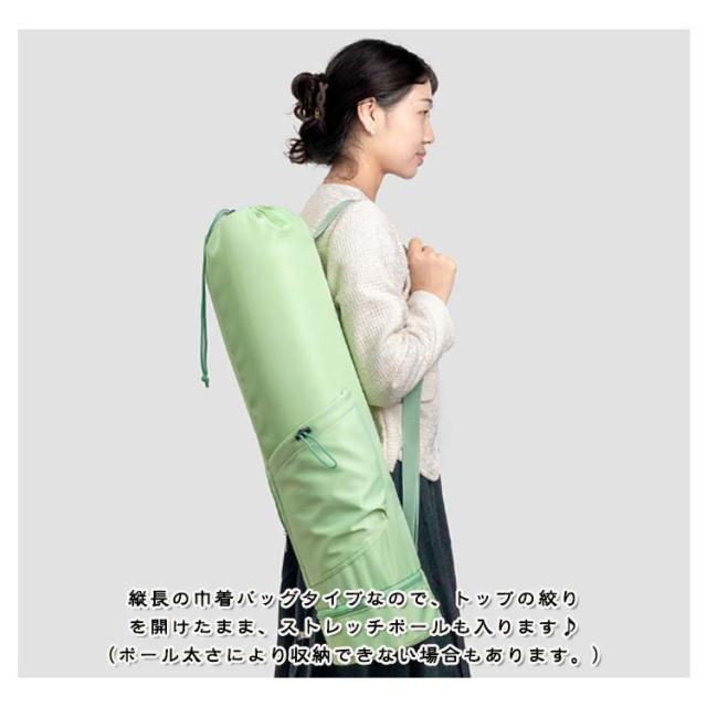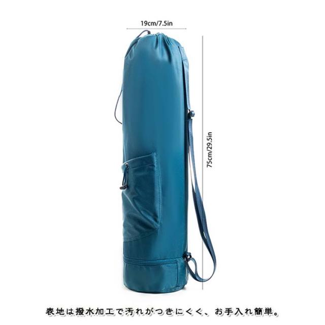 | 小物入るポケットもたくさんあり、ヨガスタジオにはこれ一つで行けるヨガマットケース メインポケットの他、財布やスマホなど貴重品を収納できるファスナーポケット、傘やペットボトルを収納可能のオープンポケット、濡れた衣類やタオルを収納できる底防水ポケットあり、ピラティス教室に通う際とても便利なヨガマットバッグ。 縦長の巾着バッグタイプなので、トップの絞りを開けたまま、ストレッチポールも入ります♪(ポール太さにより収納できない場合もあります。) ショルダーバッグ型で、両手がフリーで持ち運びやすいです。 表地は撥水加工で汚れがつきにくく、お手入れ簡単。 | |