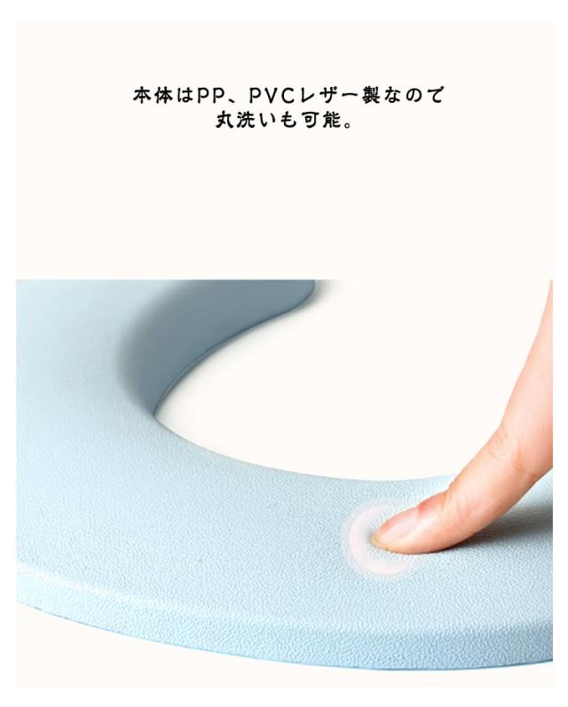 | お子さまのトイレの練習にぴったりの補助便座。【柔らかいクッション付き】【水洗い可】 【安心設計】自力でトイレができるよう人間工学に基づき設計。両サイドに丁度いいサイズの取っ手(ハンドル)を設置。おしっこ飛び散りを防ぎ男の子でも安心。トイレトレーニングに最適。 【快適さの追求】柔らかいPVCレザークッションが付いており冬でも快適に使えます。補助便座はコンパクトで置き場所も取りません。使用しない時はトイレに立て掛けておいたり、壁のフックに引っ掛けておいたり邪魔になりません。【対応便座】O型、V型、U型、楕円型の便座に対応可能。 【洗っていつも清潔に】本体はPP、PVCレザー製なので丸洗いも可能。いつも清潔にお使いいただけます。クッションも取り外してお手入れできます。 | |