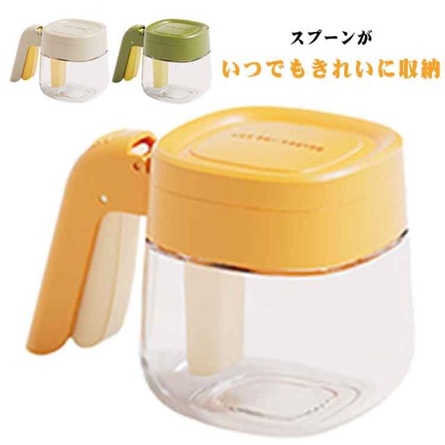 3個セット スプーン格納ポケット付き 調味料ポット 調味料入れ スプー付き 密閉ガラス調味料入れ 調味料入れ 調味料ストッカー 広口設計 調味缶 スパイスボトル 塩 砂糖入れ 湿気防止