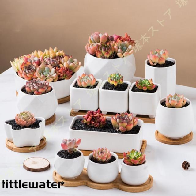 多肉植物鉢 植木鉢 テラコッタ 竹製受け皿付き Sサイズ 観葉植物 ガーデン おしゃれ 北欧 白 部屋飾り 屋外 小型 ミニ鉢 シンプル プランター 陶器 7.2cm 北欧