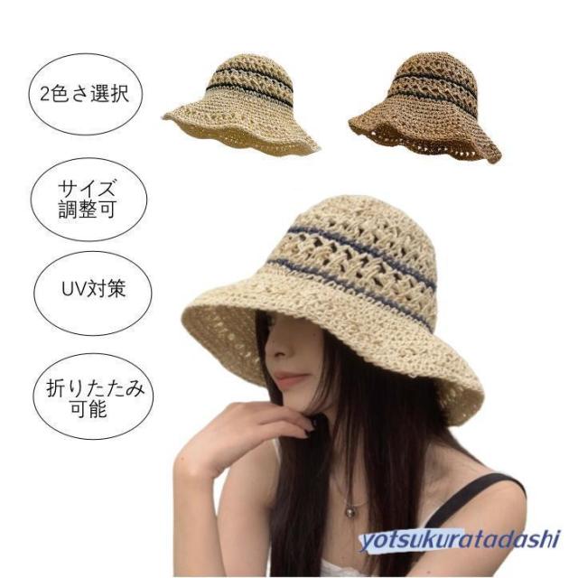 ラフィア風ペーパー麦わら帽子 レディース 麦わら ラフィア風 あごひも付き帽子 海 リゾート 可愛い 大きい 折畳み 調整可能 日焼け止め ハット