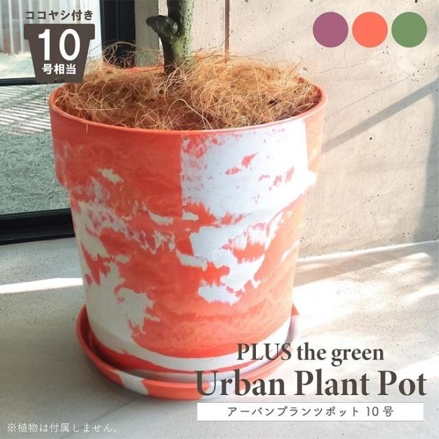 鉢 大型 プランター PLUS the green アーバンプランツポット 10号 受皿付 ココヤシファイバー付 底穴有 ストーン調 ストーンパウダー ウッドパウダー プラスチック リサイクル素材90% ペイント柄 ガーデン モダン コーディネート おしゃれ インテリア