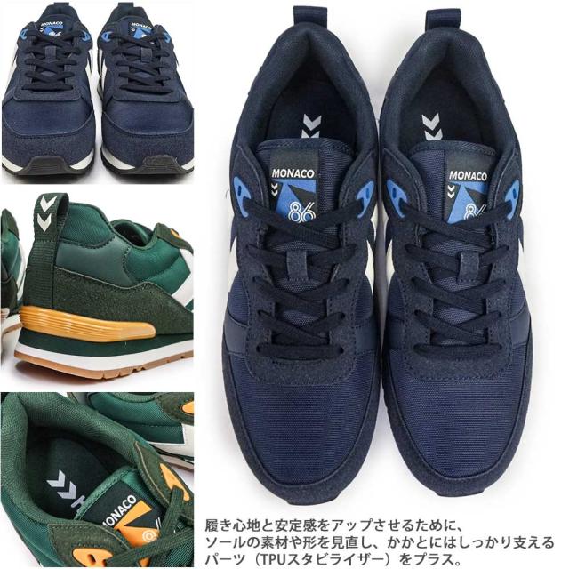 Monacoランナーは、モナコグランプリレースからインスパイアされたヒュンメルの定番スニーカーです。履き心地と安定感をアップさせるために、ソールの素材や形を見直し、かかとにはしっかり支えるパーツ(TPUスタビライザー)をプラス。クラシックなデザインとカラーリングはどんなシーンにも合わせやすい一足。