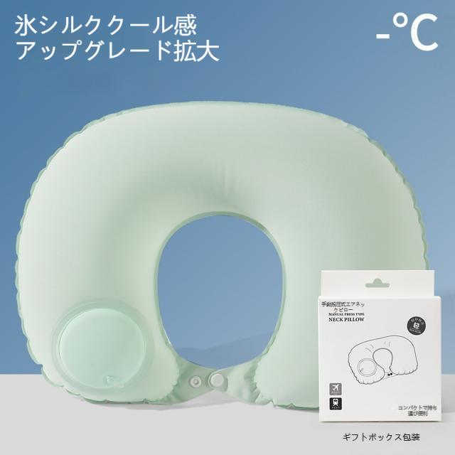 エアーピロー 携帯用 トラベルネックピロー 大きめ 冷感アイスシルク U字型枕 旅行三点セット 折り畳み 飛行機用枕