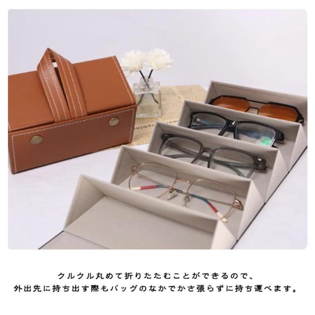 メガネ収納 メガネスタンド 5本収納 サングラス収納 複数収納 サングラス収納 壁掛け 折り畳み式 4本収納 サングラス メガネ 収納ケース 眼鏡ケース メガネケース メガネ置き PUレザー お洒落 持ち運び便利